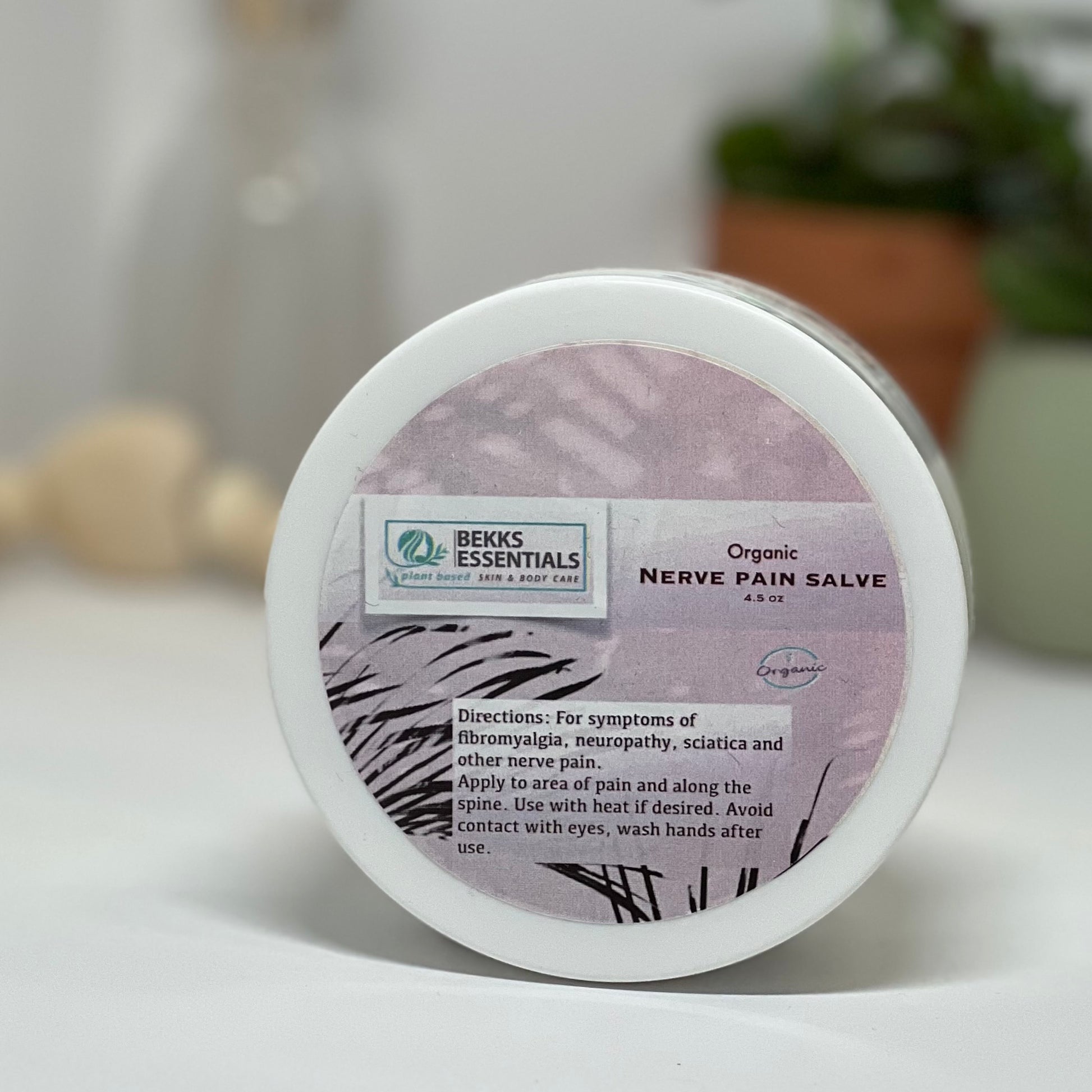 This is a Nerve Pain Salve made specifically for nerve pain that runs down the hips, lower back and legs. Massage into hips, lower back and other areas of pain for soothing comfort and relief. Use with a heating pad if desired.
